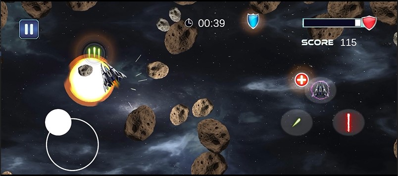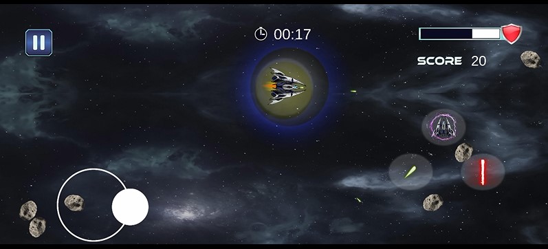 Asteroid Shooter 2D is a space survival game for Android where players control a spaceship to avoid and destroy asteroids, aiming to survive until the game timer runs out. Key features include: